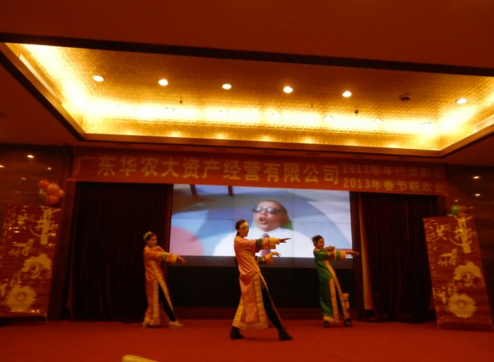 2012年1月25日下午,廣東華農(nóng)大資產(chǎn)經(jīng)營有限公司聯(lián)歡大會在廣州源華酒店隆重舉行,我司作為屬下企業(yè)參與了本次會議。大會共分為三個環(huán)節(jié),第一個環(huán)節(jié):年度優(yōu)秀集體與個人的表彰大會;第二個環(huán)節(jié):各企業(yè)節(jié)目表演;第三個環(huán)節(jié):晚宴與抽獎。