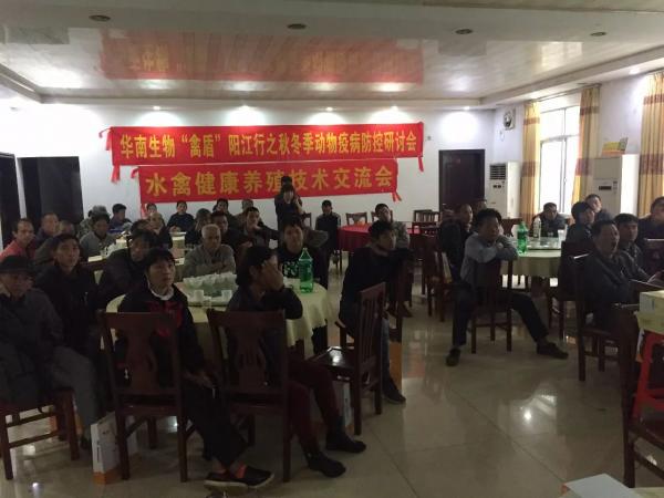 華南生物“禽盾”陽江行之秋冬季動(dòng)物疫病防控研討會(huì)--暨水禽健康養(yǎng)殖技術(shù)交流會(huì)勝利舉辦