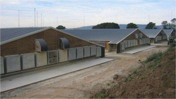 常用一分鐘通風(fēng)量的計算方法,即:一分鐘內(nèi)把相當(dāng)于密閉雞舍體積的空氣量排出室外。操作時每5分鐘為一個循環(huán)。V=A×[B×H+(B×h)÷2](V為雞舍體積,A為雞舍長度,B為雞舍寬度,H為側(cè)墻高度,h為側(cè)墻到屋脊的垂直高度。)此時,風(fēng)機的打開數(shù)量應(yīng)為:N=V÷Q×K(N為風(fēng)機打開數(shù)量,V為雞舍體積,Q為風(fēng)機每分鐘排風(fēng)量,K為安全系數(shù)一般取1.3)先計算風(fēng)機每分鐘排風(fēng)量:Q=40000÷60≈666(立方米每分鐘)同樣以10000只海蘭蛋成雞雞舍為例,V≈2600m3N=2600÷666×1.3=5.07(臺)